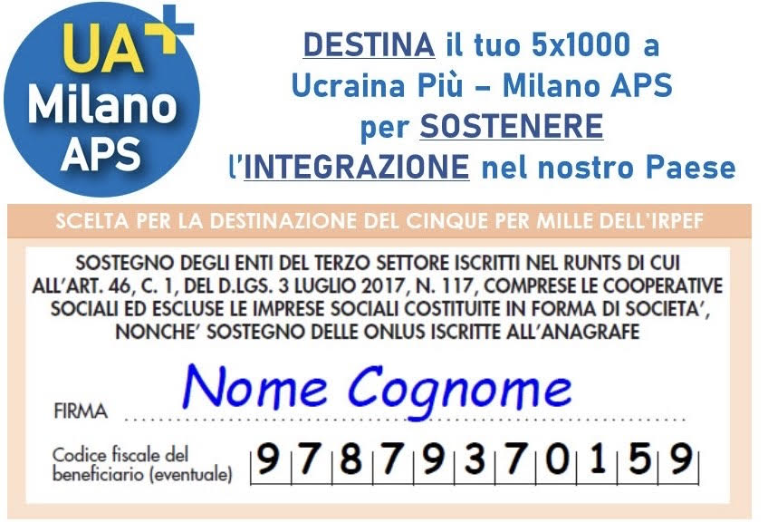 L’Associazione “Ucraina Più – Milano APS” si occupa di educazione all’interculturalità, integrazione sociale dei cittadini ucraini, di promozione dell’educazione finanziaria, collaborando attivamente con il Consolato Generale d’Ucraino a Milano e l’Ambasciata d’Ucraina in Italia, svolgendo numerose attività di promozione culturale ucraina e organizzando mostre, concerti e presentazioni letterarie.
